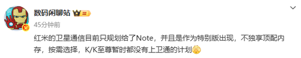 7月28日下午,CNMO注意到,有业内人士透露,红米目前的卫星通信技术只规划给了Note系列,即刚刚入网的REDMINote15Pro+并且是作为特别版出现,不独享顶配内存,按需选择。而定位更高的REDMIK系列和REDMIK系列至尊版均暂时没有搭载卫星通信技术的计划。